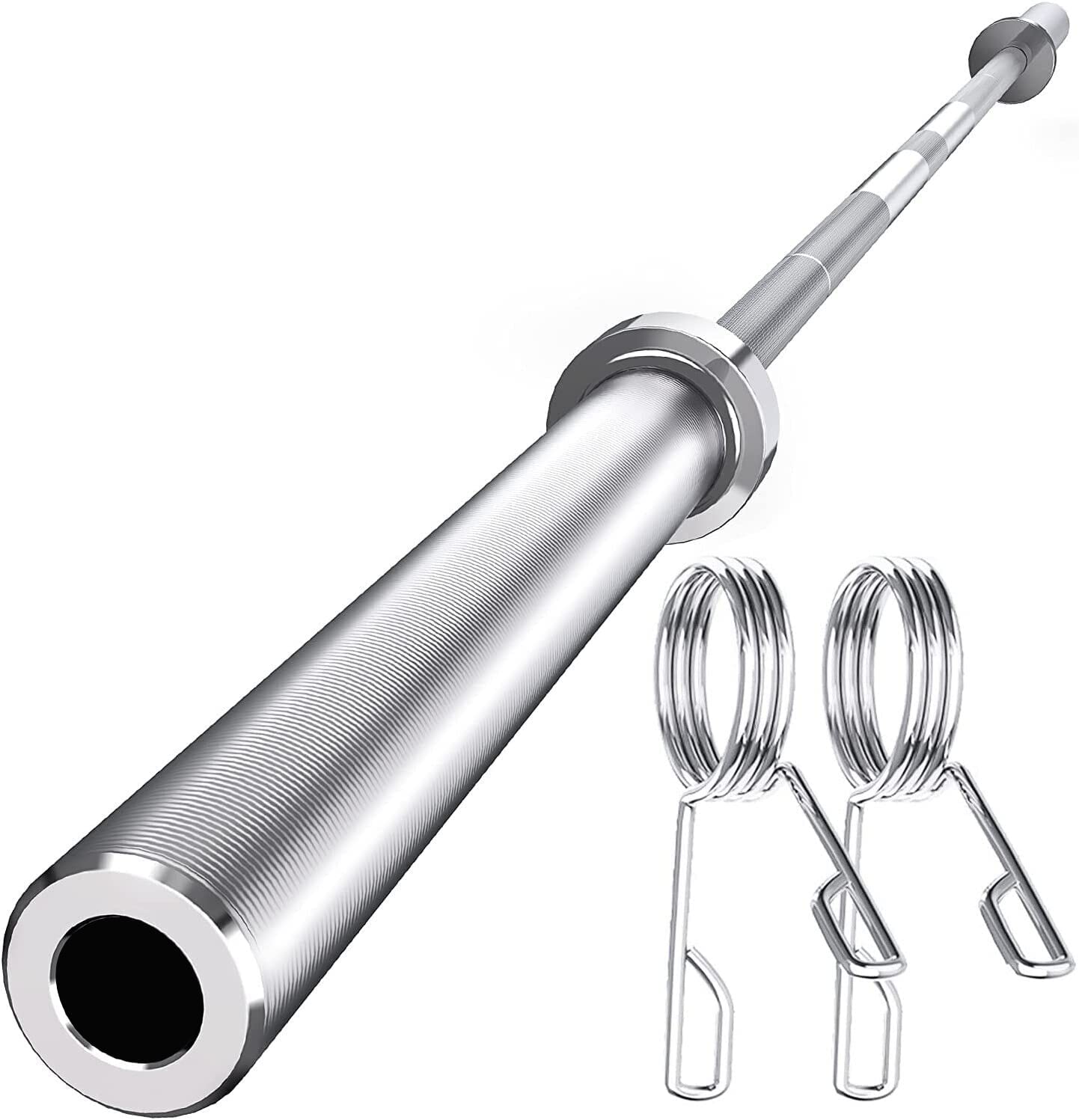 - The barbell you need to get in shape is right here! We've got all of your needs covered with this versatile piece. Not only can it hold weight, but the 2 inch olympic barbell collar clips prevent any plates from sliding off during exercises like pull-ups or squats - making sure that everything stays put where they should be so there's less risk for injury too!.