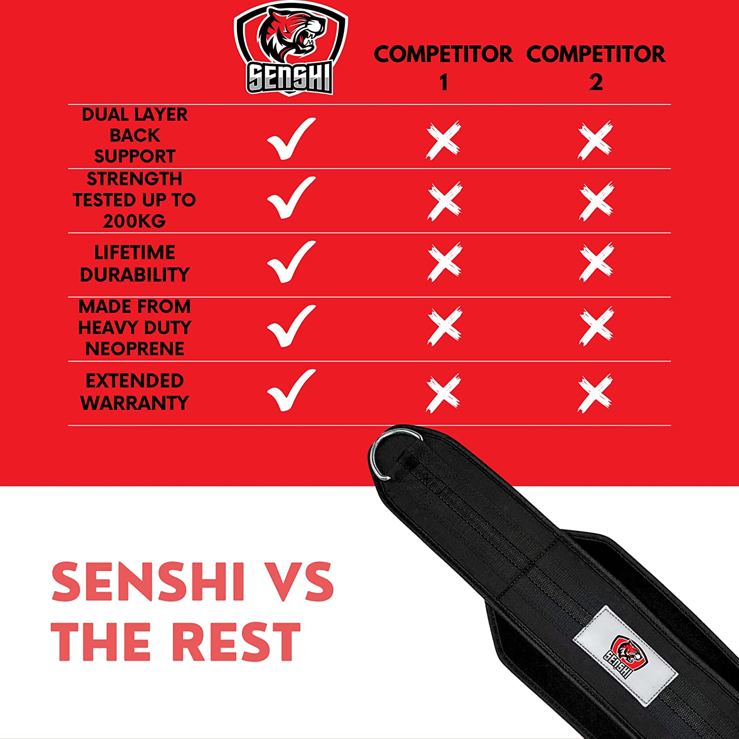 - Obtenha a experiência Senshi. Com mais de 1.000.000 de clientes satisfeitos, é seguro dizer que sabemos o que estamos fazendo! Com cada pedido de nosso cinto de imersão de camada dupla, oferecemos uma garantia estendida que cobre você além de seus direitos legais e amazônicos!